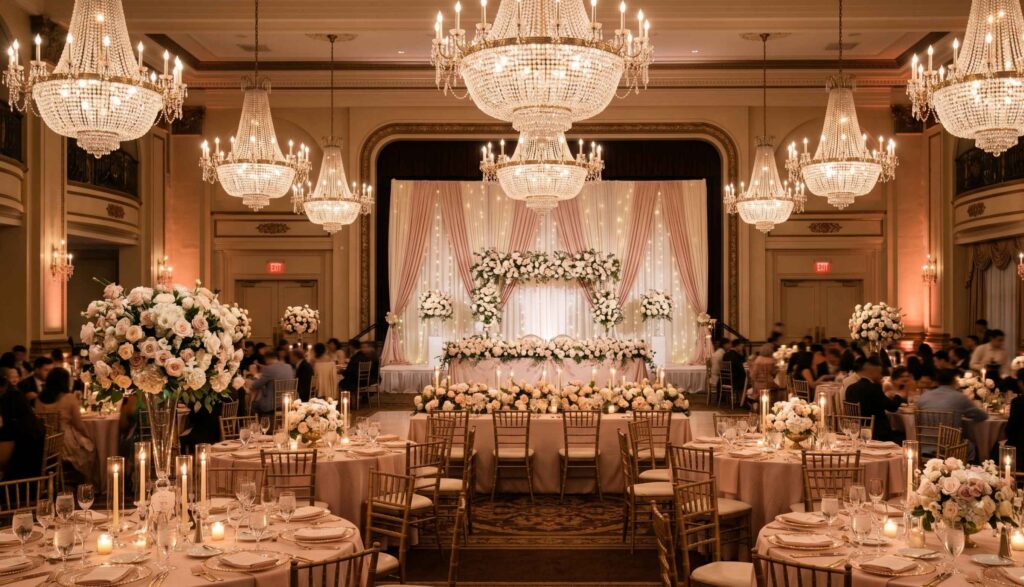 Luxury or Royal | $6,000 to $15,000+ | Large ballrooms and halls |