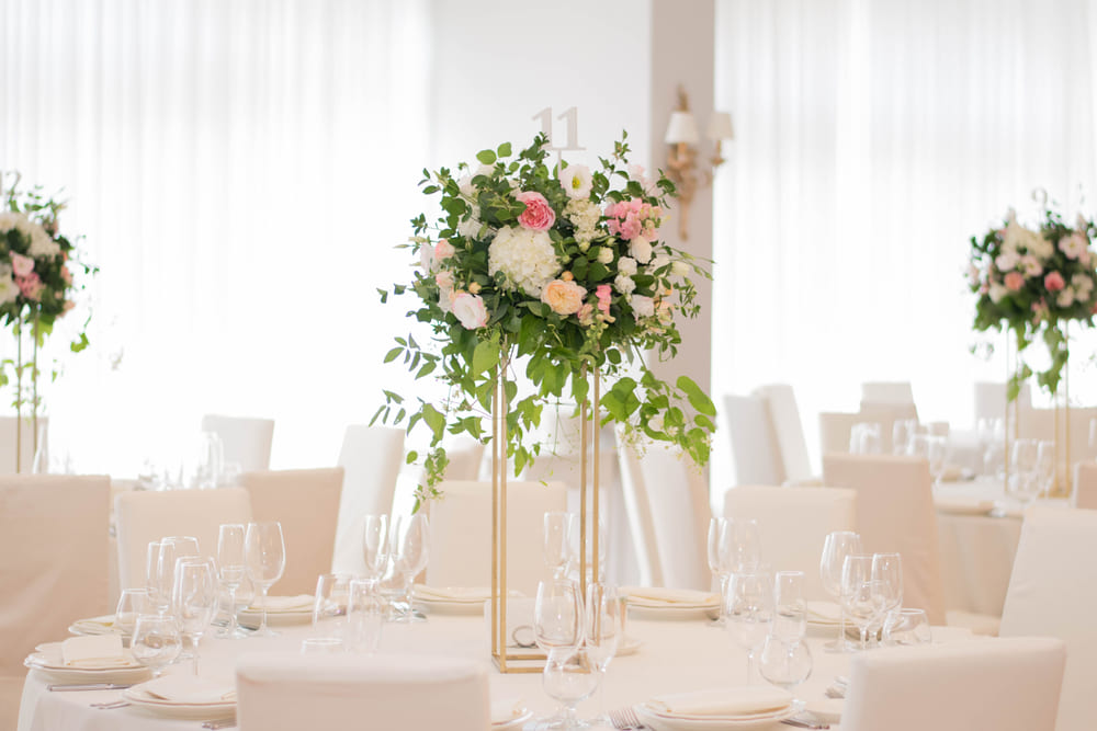 Consider your venue’s existing decor, lighting, and architecture when selecting your centerpiece style to ensure everything works harmoniously together.